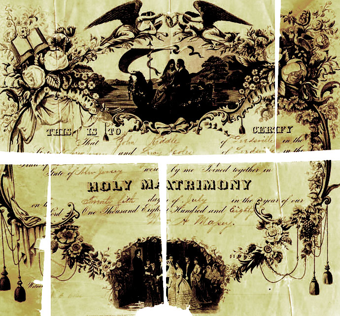 | This is to certify that John Riddle of Leedsville in the State of New Jersey and Lucy Coles of Leedsville in the State of New Jersey were by me joined together in Holy Matrimony on the twenty fifth day of July in the year of our lord One Thousand Eight Hundred and Eighty.